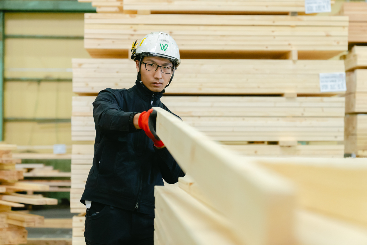 JAS認定工場として厳格な品質管理基準を遵守するだけでなく、さらに厳しい独自の「ウイング基準」を設け、入荷した製材一本一本をチェックし、選別しています。
